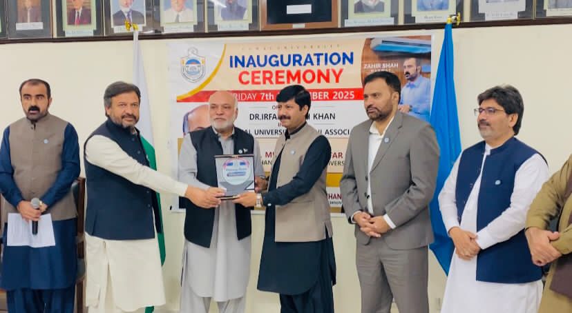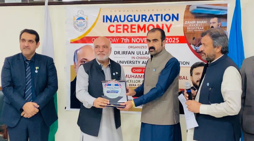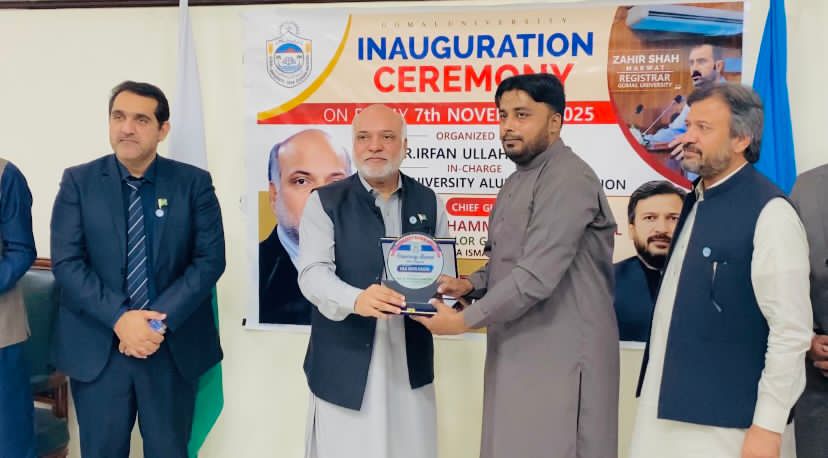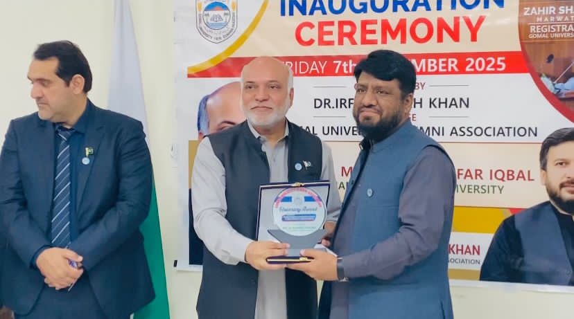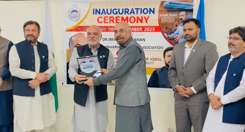 Vice Chancellor of Gomal is presenting the Sheild to Dr. Irfan Ullah Khan, Asisstant Professor of Public Administraion Dept. in Gomal University.