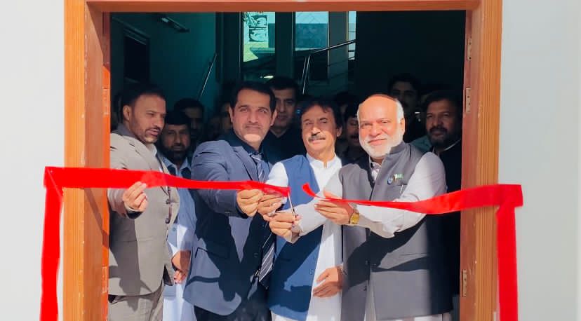 Gomal University VC Dr. Zafar Iqbal, Professor Dr. Shakeeb Ullah, Professor Dr. Khair Uz Zaman & Brigadier Abdul Rahim are cutting the inauguration Ribbon of Alumni in Gomal University.