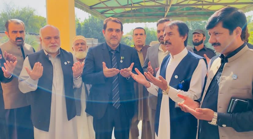 Gomal University VC Dr. Zafar Iqbal, Professor Dr. Shakeeb Ullah, and other Participants are praying on the occasion of inauguration of Alumni in Gomal University.