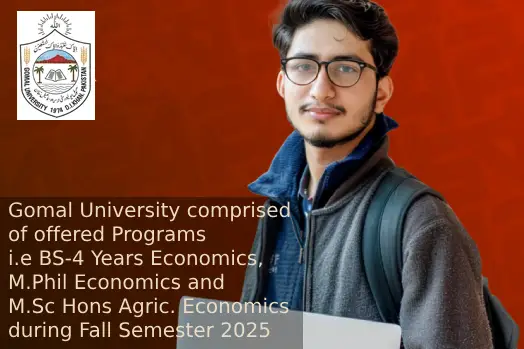 Gomal University comprised of offered Programs i.e BS-4 Years Economics, M.Phil Economics and M.Sc Hons Agric. Economics during Fall Semester 2025