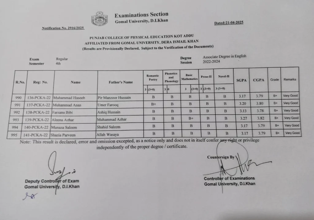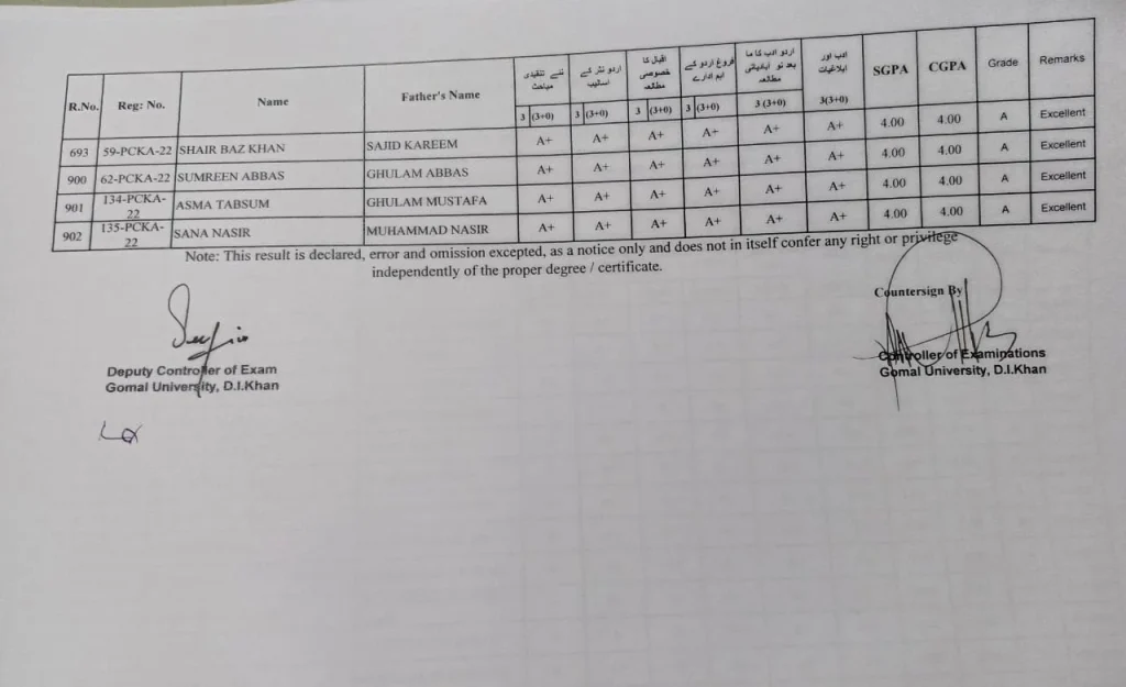 DIRECTORATE OF ADMISSIONS, GOMAL UNIVERSITY, D.I.KHAN